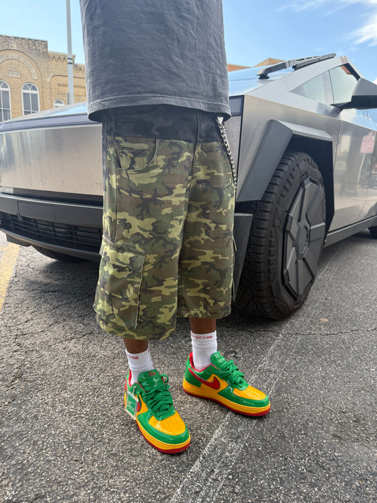 “DAWN” MULTI-CAMO DOUBLE-POCKET CARGO SHORTS