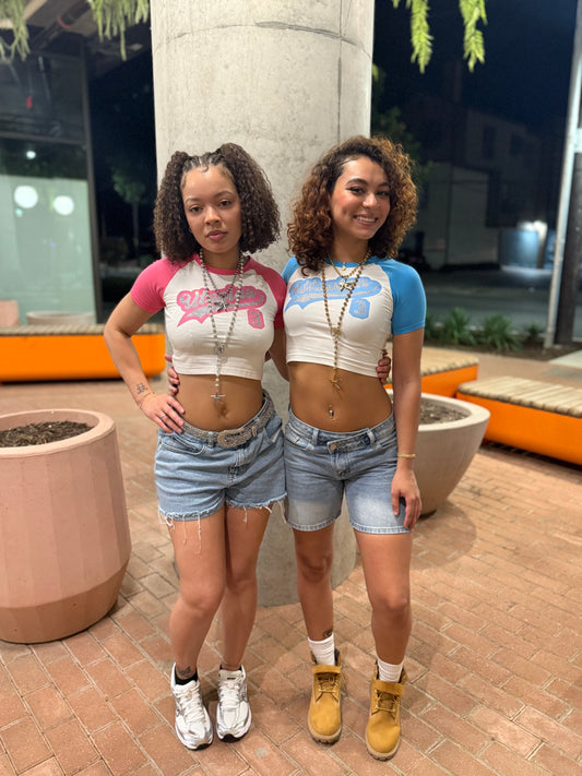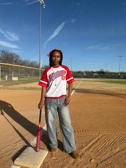 “CHERRY” UTOPIAN RHINESTONE BASEBALL TEE